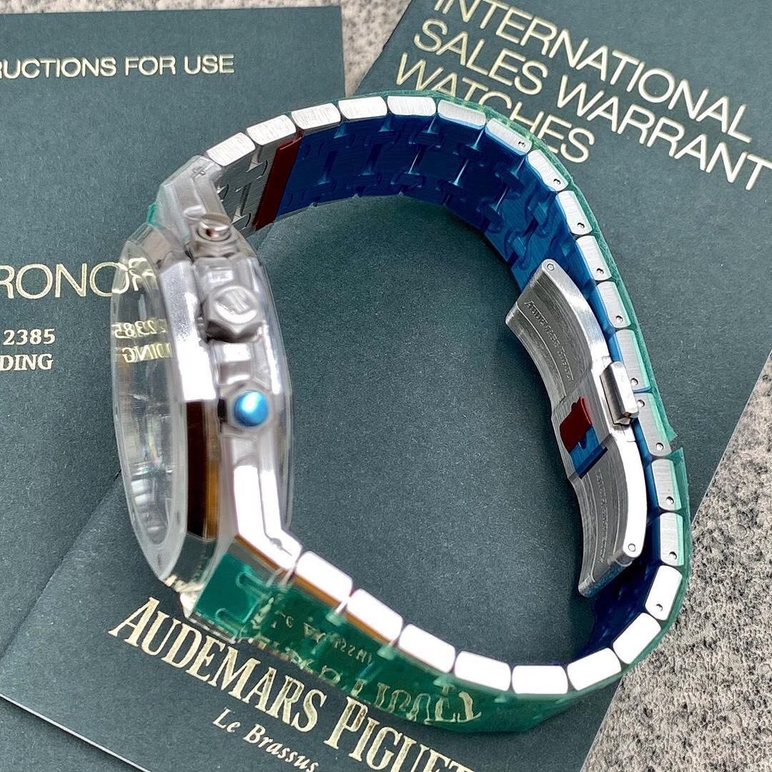 L’Audemars Piguet Royal Oak Chronograph Replica con quadrante blu rappresenta una delle configurazioni più desiderate della collezione Royal Oak. Il design iconico è reso immediatamente riconoscibile dalla cassa ottagonale in acciaio satinato con viti a vista e dal celebre quadrante tapisserie.