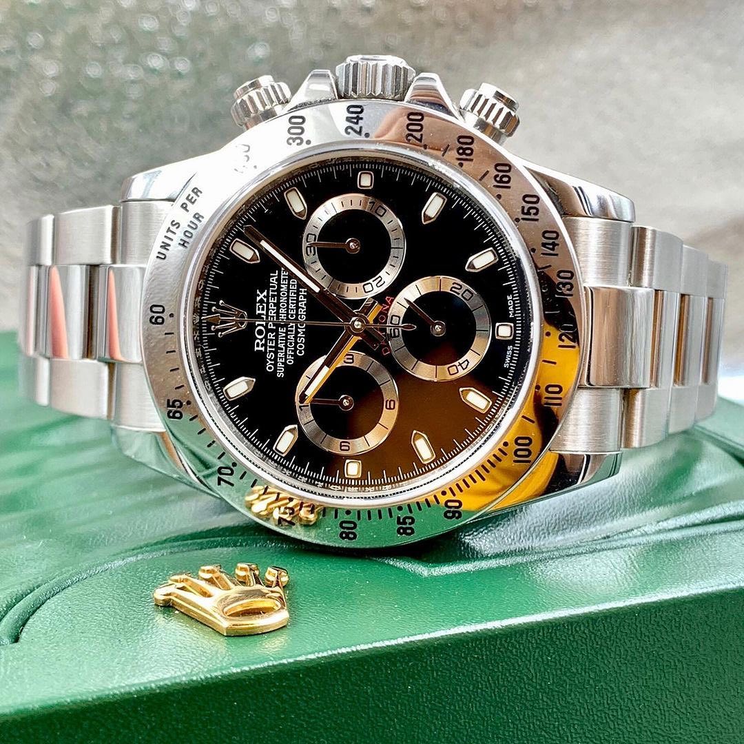 Il Rolex Cosmograph Daytona con quadrante nero è la versione più aggressiva e racing del leggendario cronografo Rolex.